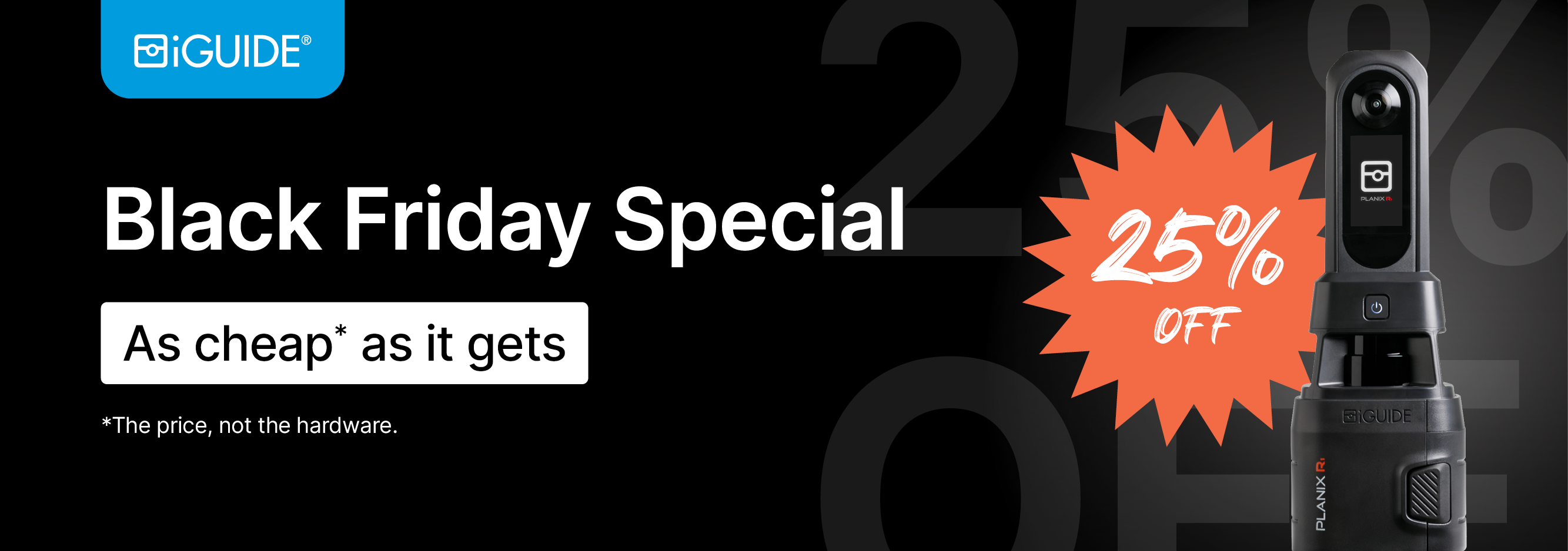 The iGUIDE PLANIX camera system is a 360° time-of-flight lidar scanner with accuracy exceeding industry standards.
